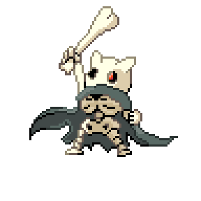 A Duswak is the evolved form of a Cubone that has grown tough by overcoming the grief of losing its mother. A glare from its single scarlet eye makes even burly grown-ups freeze in utter fear.