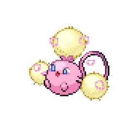 Mewluff ride warm southern winds to cross the sea and fly to foreign lands. A Mewluff is said to possess the genes of all Pokémon.