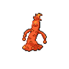 It is a species of Pokémon that lives in volcanic areas. If its body cools, its skin hardens and immobilizes it. To avoid that, it sleeps near magma.