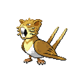 A Raticate's sturdy fangs grow steadily. To keep them ground down, it gnaws on rocks and logs. It may even chew on the walls of houses.