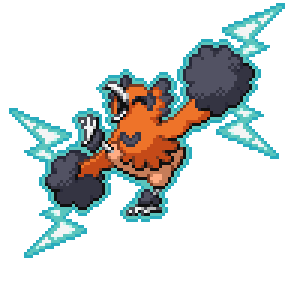 It creates an electric charge by rubbing its feathers together. It dances over to its enemies and delivers shocking electrical punches.
