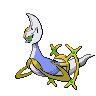 Shiny particles are released from its wings like a veil. It is described in mythology as the Pokémon that shaped the universe with its 1,000 arms.