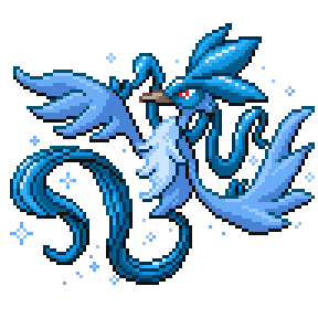 Camouflaged as rotten kelp, they spray liquid poison on prey that approaches unawares and then finish it off. POKENAME is a legendary bird Pokémon that can control ice.