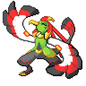 The fusion of two Volcarona gave rise to a paradoxical form some once depicted as being an ancient version of a Volcarona. Its body is now dense with muscles that help it to spew even more intense flames that can now melt rock.