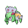 Any frontal attack is repulsed. It is a docile Pokémon that feeds on grass and berries.