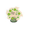 A Pokémon that was formed by 108 spirits. It scatters spores from holes in the cap on its head.