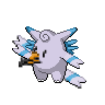 A Clefable uses its wings to skip lightly as if it were flying. Its bouncy step lets it even walk on water. On quiet, moonlit nights, it strolls on lakes.