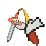 Apparently this Pokemon is born when a departed spirit inhabits a sword. It carries food bundled up in its tail.