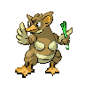 It is adept at sending foes flying with harsh tackles using its tough, scaly body. It is always seen with a stick from a plant.