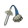 Apparently this Pokemon is born when a departed spirit inhabits a sword. It climbs mountain paths using only the power of its arms.