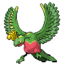Its feathers--which glow in seven colors depending on the angle at which they are struck by light--are thought to bring joy. Leaves grow out of this Pokémon's body.