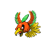 This Pokémon's stomach fluid can even digest scrap iron. Its feathers--which glow in seven colors depending on the angle at which they are struck by light--are thought to bring joy.
