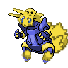 Its iron horns grow longer a little at a time. They attach themselves to large-bodied Pokémon and absorb static electricity, which they store in an electric pouch.