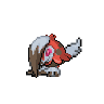 It scatters spores from holes in the cap on its head. It goads its enemies into attacking, withstands the hits, and in return, delivers a headbutt, crushing their bones with its rocky mane.