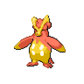 The three horns that extend from its beak attest to its power. If a POKENAME is spouting yellow flames from its mouth, it is in good health.