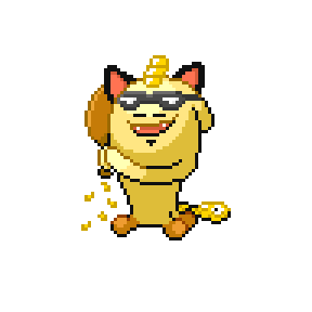 This fusion is prized by unscrupulous types, as each strike on the creature seems to form coins. While the coins appear golden, inspection reveals they are made of pyrite. Thankfully, Meowbuffet does not seem to mind being struck.
