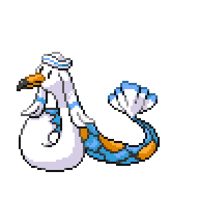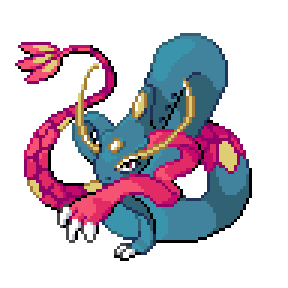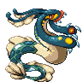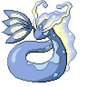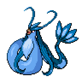 It is said to live at the bottom of large lakes. Considered to be the most beautiful of all Pokémon, it has been depicted in paintings and statues.