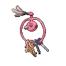 It never lets go of a key that it likes, so people give it the keys to vaults and safes as a way to prevent crime. This Oricorio relaxes by swaying gently.