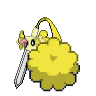 Apparently this Pokemon is born when a departed spirit inhabits a sword. It creates an electric charge by rubbing its feathers together.