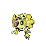 Dozens of little pom-poms make up Origela's body, rubbing against each other to generate protective static electricity. It can vibrate itself faster to generate larger amounts and send out crackling bolts of lightning if needed.