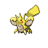 By rubbing its pincers together, it can generate electricity that is then stored within the red pouches upon its cheeks. It will never let go of prey grabbed by its pincers until they are shocked into submission.