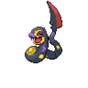 It uses its blade-like tail to stab and slash at its opponents, who will oft succumb to poison before their wounds. Its sharp fangs can pierce the hide of some Rock-type Pokémon with relative ease, making it very dangerous.