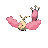 Skitria soars playfully through the sky, chasing wisps of clouds high in the mountains. If a Trainer manages to earn Skitria's trust, it will allow them to sleep wrapped in its soft, fuzzy wings.