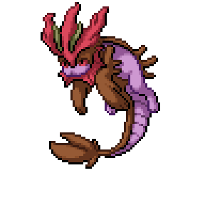 POKENAME underwent a spontaneous mutation and grew fins and gills that allow them to live underwater. Camouflaged as rotten kelp, they spray liquid poison on prey that approaches unawares and then finish it off.