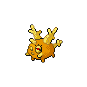 Corsola live in warm southern seas. If the sea becomes polluted, the beautiful coral stalks become discolored and crumble away in tatters.