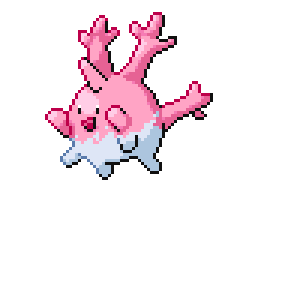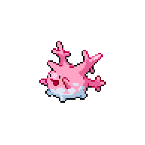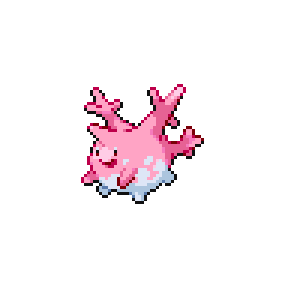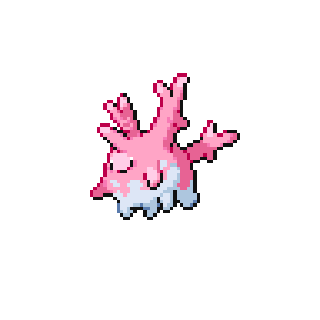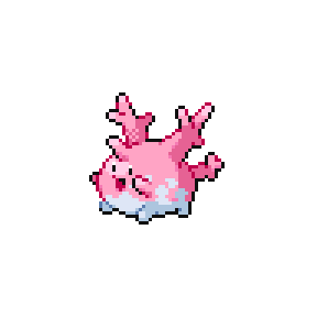 Corsola live in warm southern seas. If the sea becomes polluted, the beautiful coral stalks become discolored and crumble away in tatters.