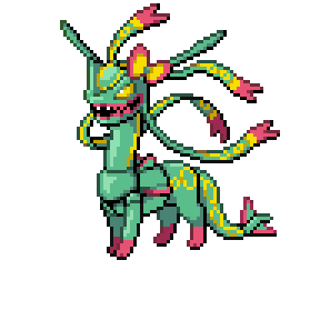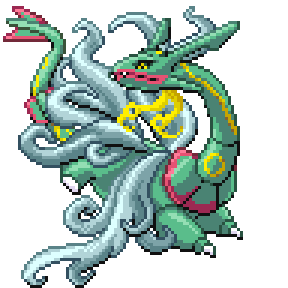 A Pokémon that flies endlessly in the ozone layer. It is said it would descend to the ground if Kyogre and Groudon were to fight.