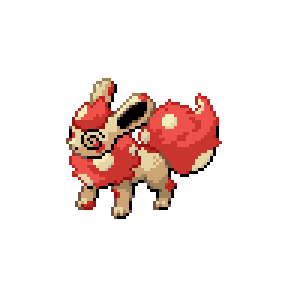 It is distinguished by a pattern of spots that is always different. Its unsteady, tottering walk has the effect of fouling its foe's aim.