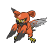 It has a particularly well-developed lower jaw. In the fever of an exciting battle, it showers embers from the gaps between its feathers and takes to the air.