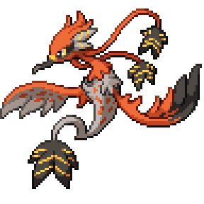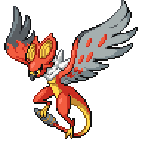 In the fever of an exciting battle, it showers embers from the gaps between its feathers and takes to the air.