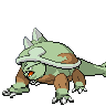 Small Pokémon occasionally gather on its unmoving back to begin building their nests. A Tyranterra is so overwhelmingly powerful, it can bring down a whole mountain to make its nest.