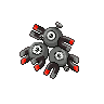 It is actually three Magnemite linked by magnetism. This Pokémon is shaped like ancient text characters.
