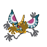 It intimidates foes with the large eyelike patterns on its antennae. These Pokémon arose from the spirits of people interred in graves in past ages.